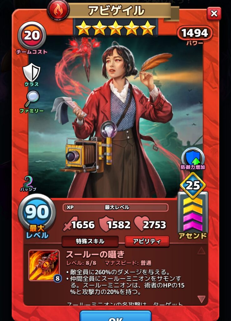 ↑そしてこちらが先日レイドで対戦した秘密のサモンのシークレット英雄である【アビゲイル】さんです。