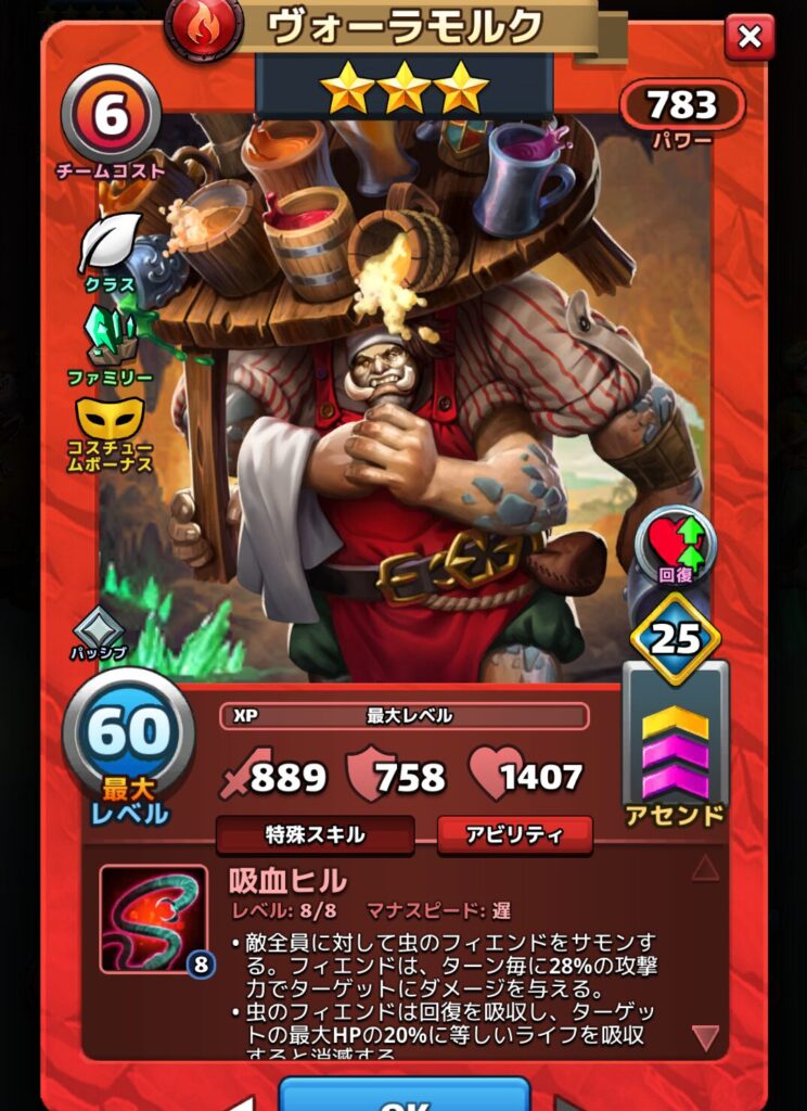 ヴォーラモルクさんは敵全員に虫のフィエンドをサモンする特殊スキルを持つ星3英雄です。
