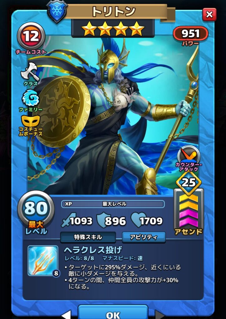 トリトンさんは使い勝手の良い特殊スキルを持った星4英雄です。