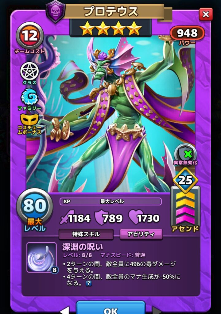 《エンパズ攻略》星4英雄データリスト|プロテウス【empires & puzzles】