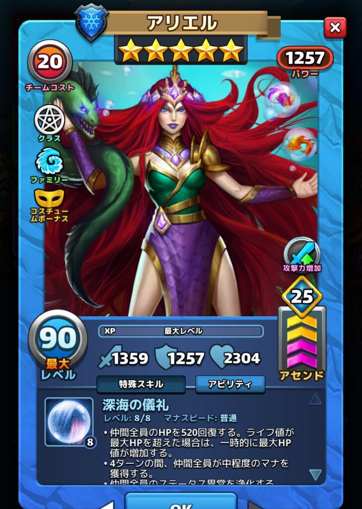 《エンパズ攻略》星5英雄データリスト|アリエル【empires & puzzles】