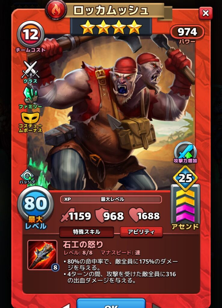 ロッカムッシュさんはユニークで使いこなすのが難しい特殊スキルを持つ星4英雄です。