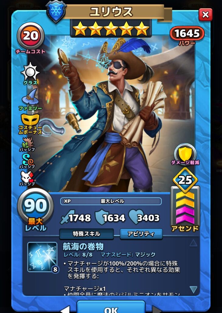 ちなみにユリウスさんはマナスピード:マジックの珍しい英雄です。