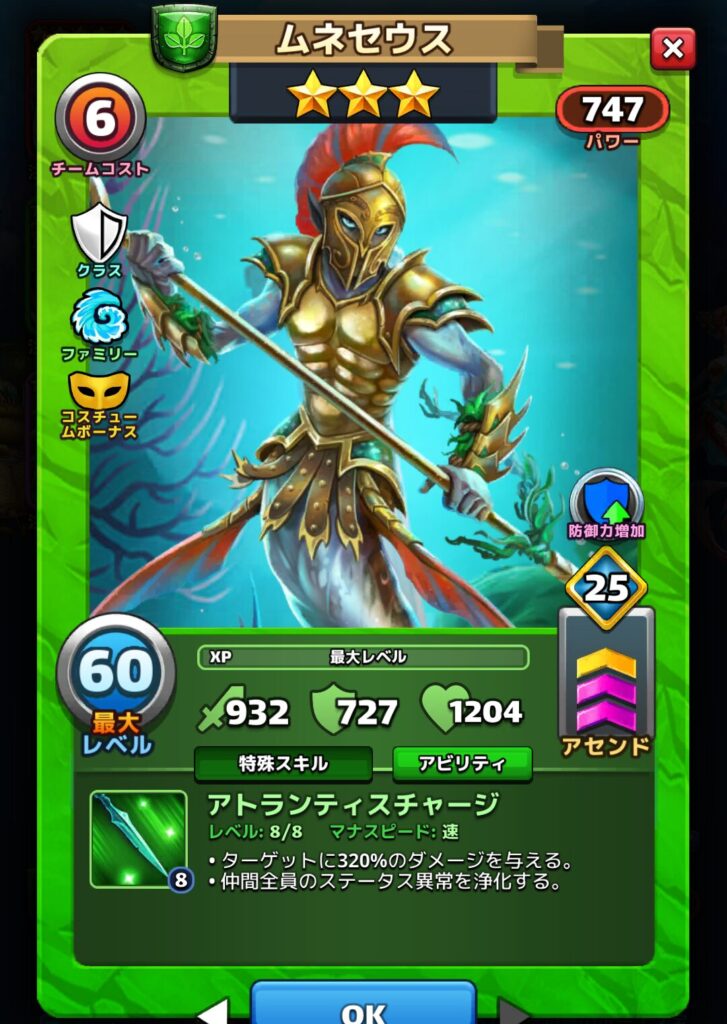 ↑こちらはコスチューム版ムネセウスの最強育成ステータス例です。