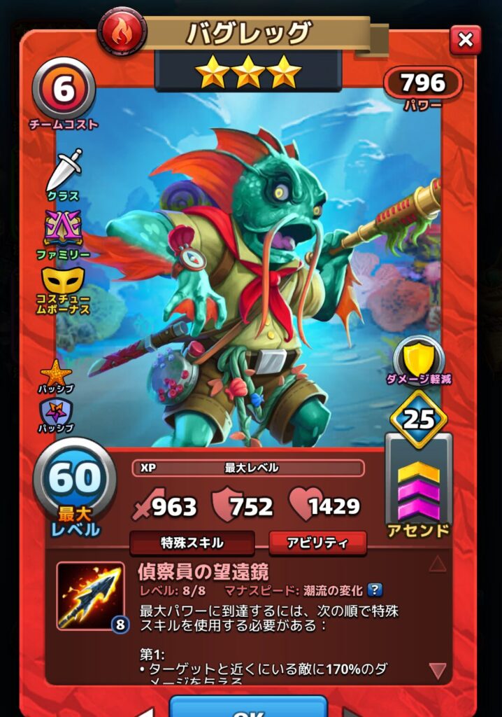 バグレッグさんは強力な英雄が揃うアトランティスの悪夢ファミリーの星3英雄です!