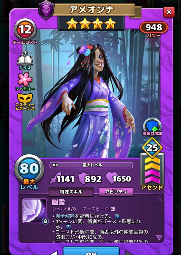 アメオンナさんのアビリティとパッシブ効果は以下の通りです。※達人アビリティ開放した場合