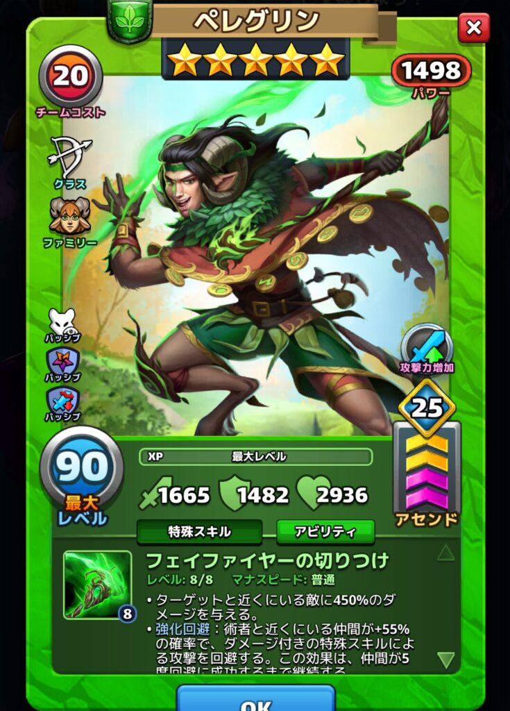 ペレグリンさんは森のファウヌスファミリーの最強クラス星5英雄です。