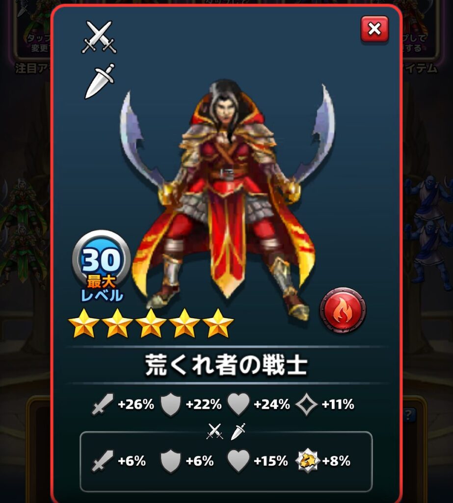 ※上記のレジェンド兵団のスクリーンショットは炎属性の物となっておりますが、これらと同じレジェンド兵団が各属性分います。