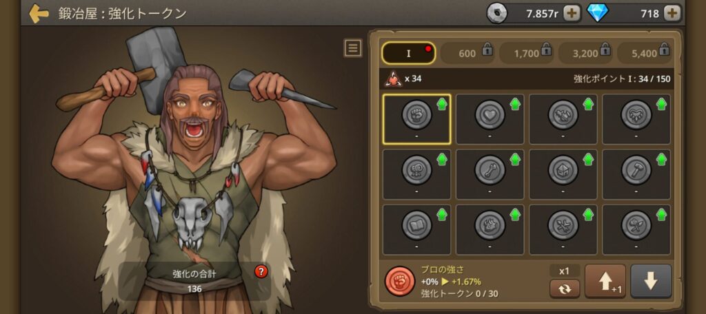 鍛冶屋では強化トークンを使用してキャラクターや仲間を強化する事ができる。