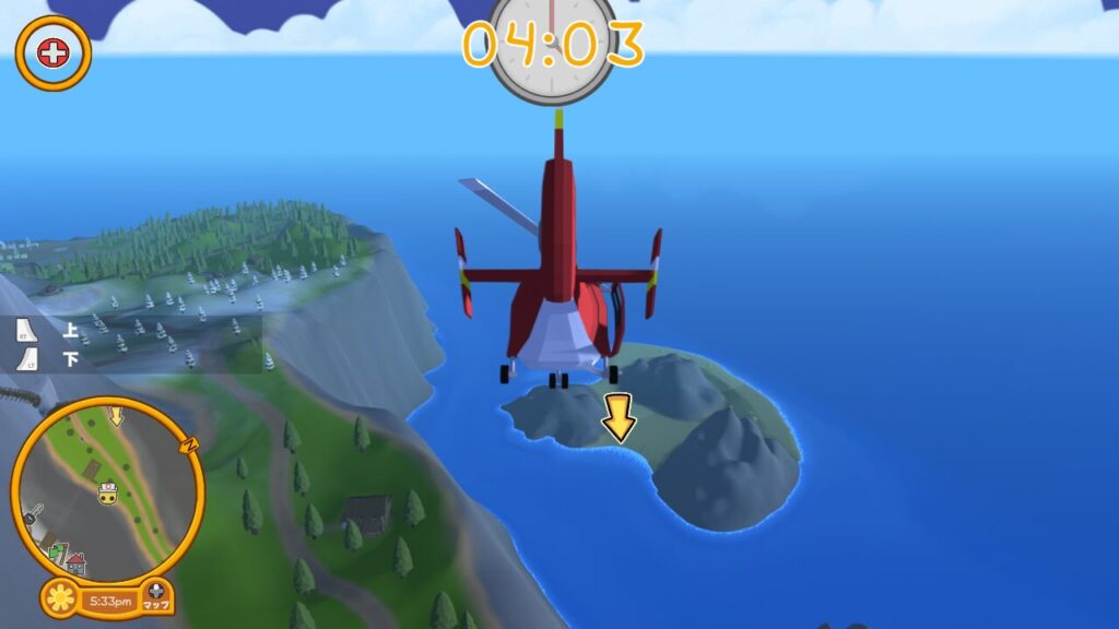 ↑でも画面に【しっぱい!!】と表示されるだけで許してもらえたので、自分への罰としてヘリごと墜落して無事お仕事終了です…。