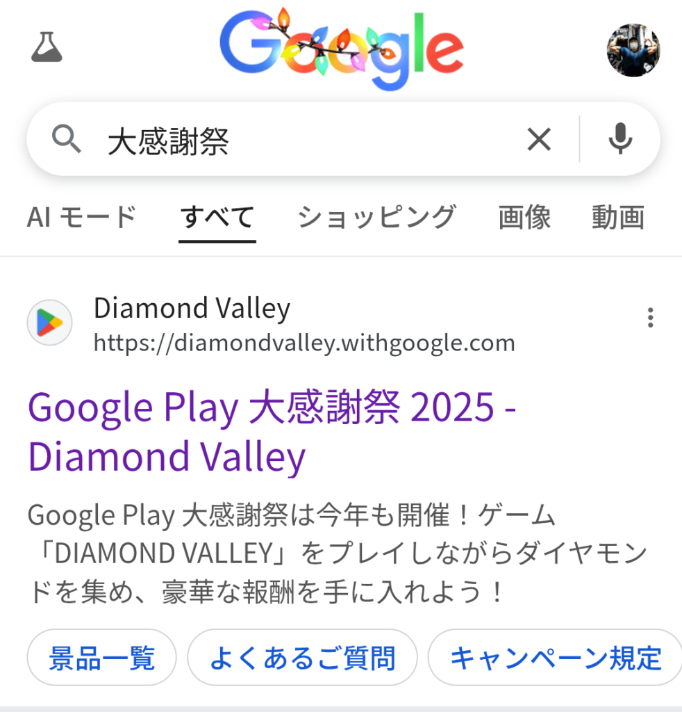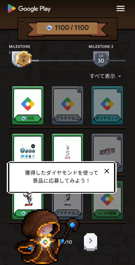 なんとプレイすればするほどにダイヤモンドが貯まり、それを使用して豪華賞品の獲得に応募する事ができるという超大盤振る舞い的なGoogle様の感謝祭。