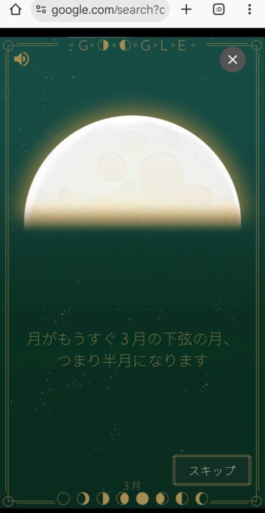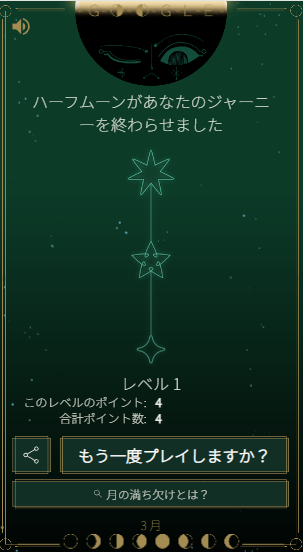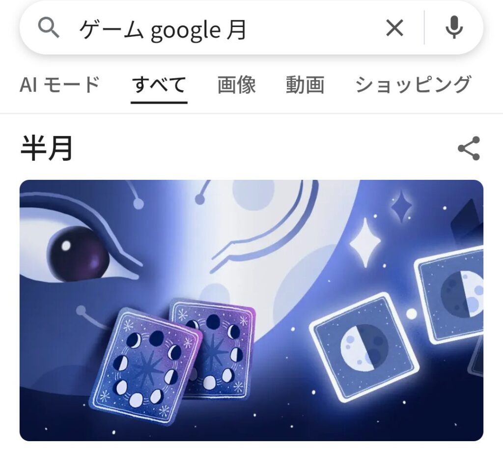 ↑こちらの無料ゲームは、chromeの検索窓から、「ゲーム Google 月」「Google 半月」などと検索すると出てきます。