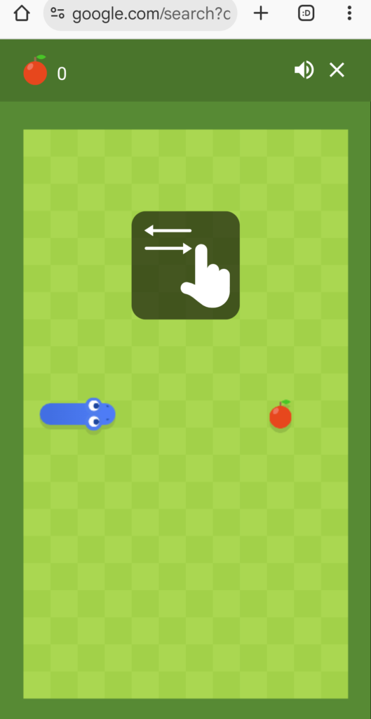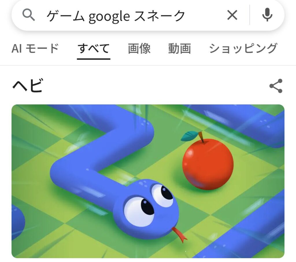 ↑こちらの無料ゲームは、chromeの検索窓から、「ゲーム Google スネーク」「Google ヘビ」などと検索すると出てきます。