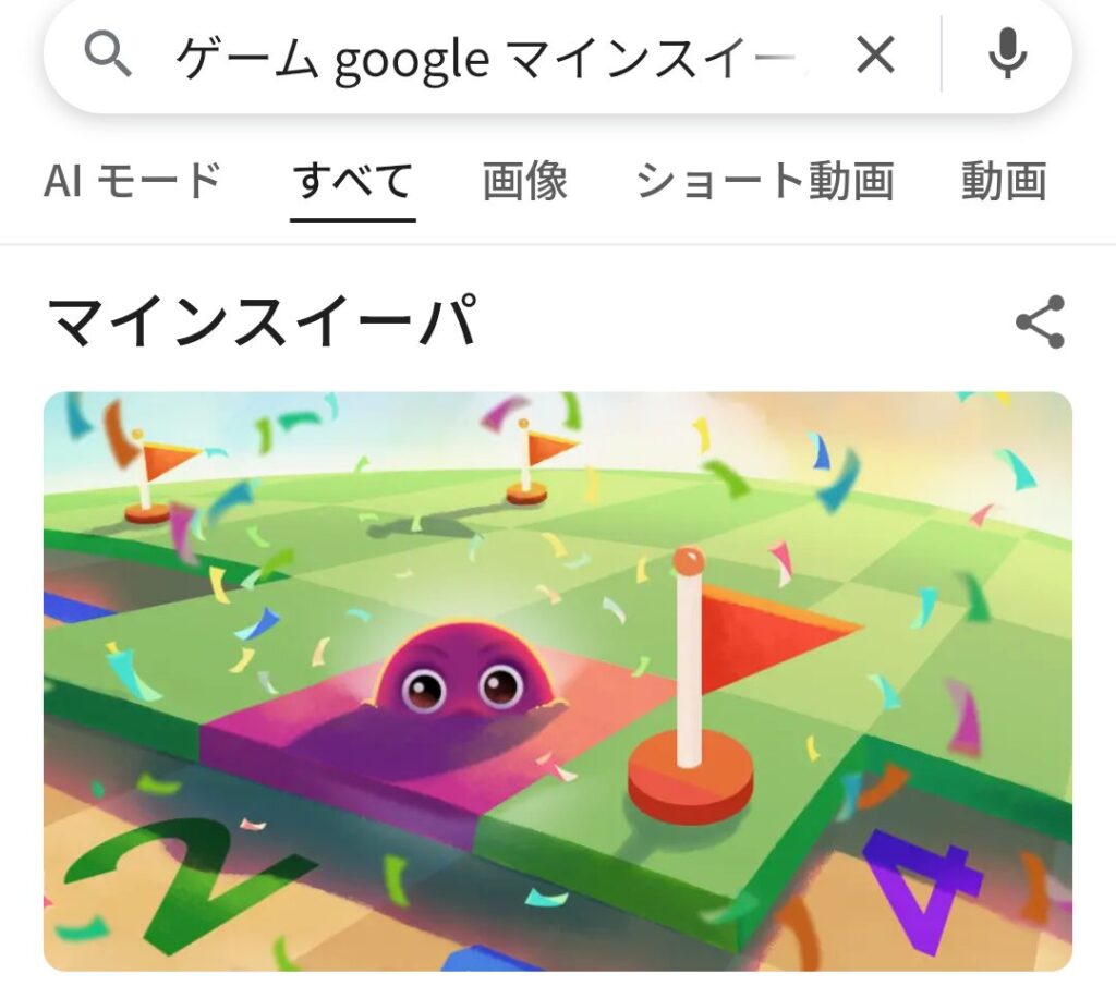↑こちらの無料ゲームは、chromeの検索窓から、「ゲーム Google マインスイーパ」「Google パックマン」などと検索すると出てきます。