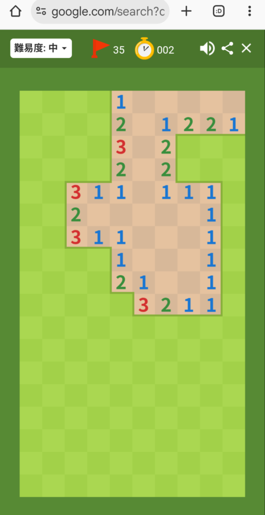 - 数字をヒントにする:開いたマスに数字が表示されたら、その数字が接する8マスにある地雷の数を示しています。