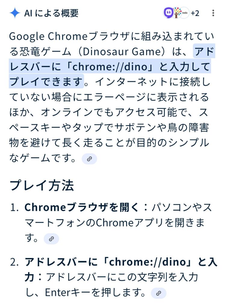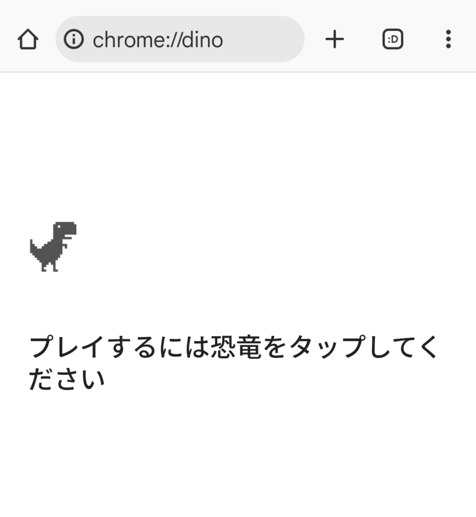 ↑ジェミニAIに聞いたら直接アドレスバーにchrome://dinoと打ち込めとあったので、その通りにしたら辿り着きました。