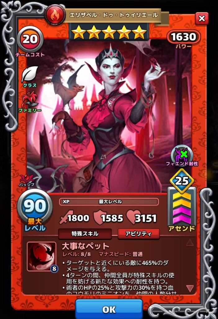 エリザベル・ドゥ・トゥイリエールさんのアビリティとパッシブスキルは以下の通りです。※達人アビリティ開放した場合
