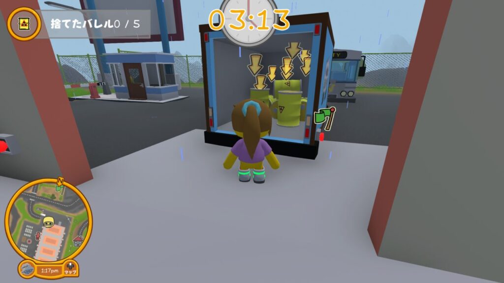 ↑たる(以後バレルと表記)を掴み外にあるトラックに積み込み、採石場へ向かいます。