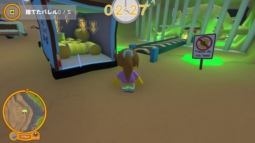 ↑近くに停めてあったトラックの荷台にハンバーガーがあったので、お仕事ついでにヘドロモンスターのルイに食べさせてあげる事にしました。