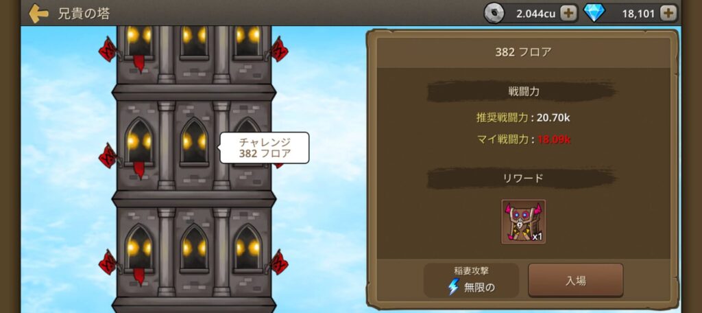 これ、意外と多くのプレイヤーさんが見落としている要素で、デイリーチケット使用のボス討伐は毎日欠かさずこなしているのにも関わらず、なぜか兄貴の塔だけチャレンジするのをずっと忘れてしまっているというパターンがあるのです。