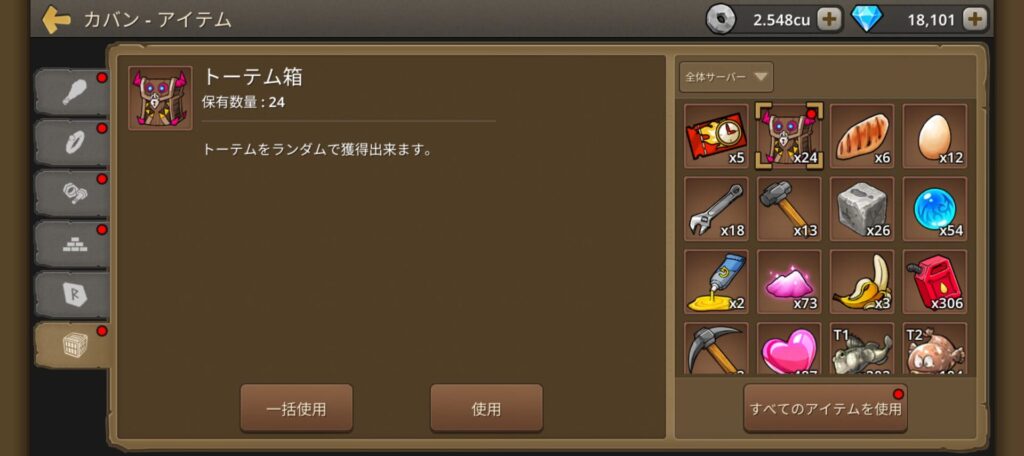 兄貴の塔チャレンジをすっかり忘れていた場合はたくさんのトーテムが手に入るので、一気にかなりのパワーアップがのぞめる。