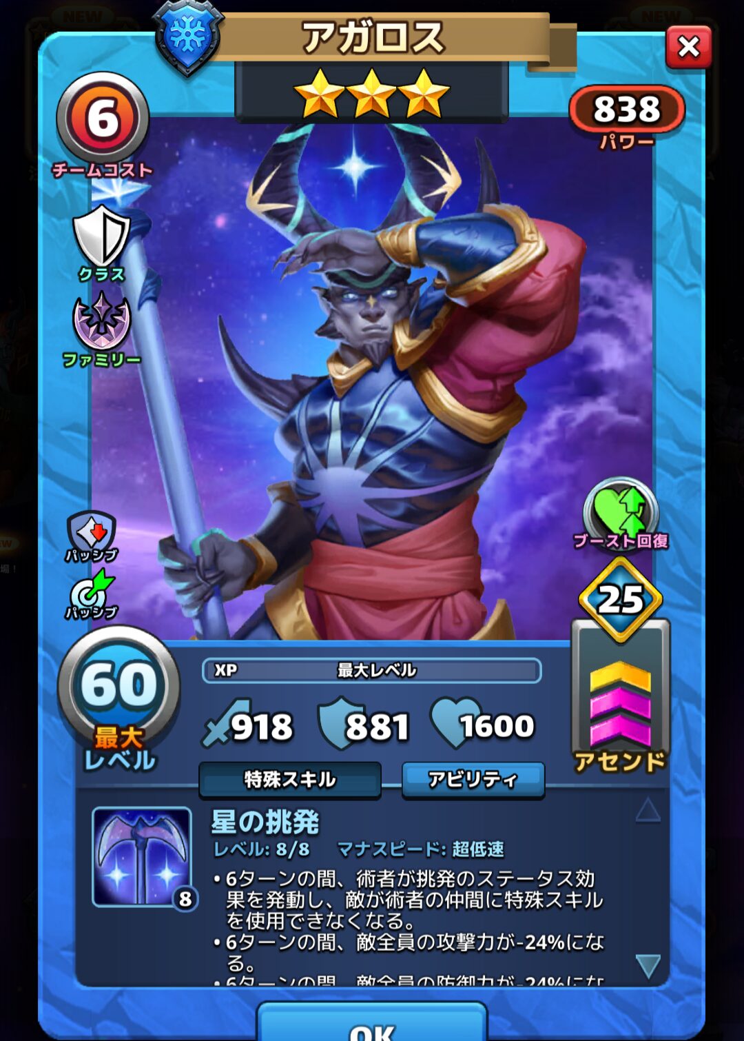 アガロスさんは以下のファミリーに所属する星3英雄です。