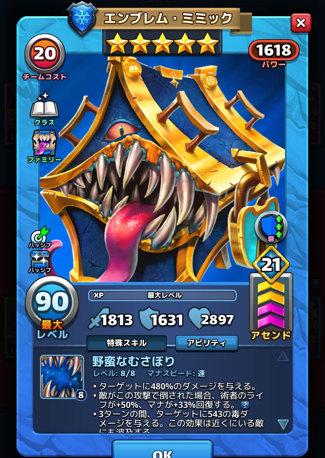エンブレム・ミミックはミミックファミリーの星5英雄です。