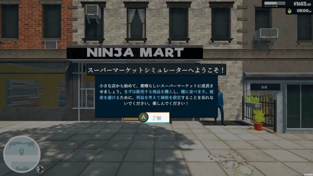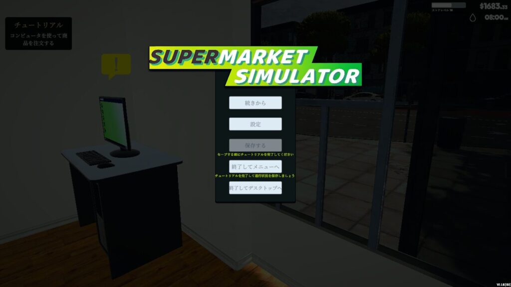 ↑ある日いつものように【Supermarket Simulator】のセーブデータをロードしゲームを開始すると、なぜ急にゲーム開始直後に出るべきチュートリアルが発生した。