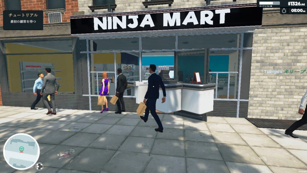 ↑チュートリアルの【最初の顧客を待つ】の表示が消えて、普段通りのプレイ画面に戻っていました。