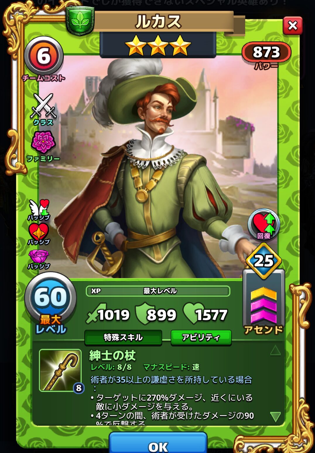 ルカスのアビリティとパッシブスキルは以下の通りです。※達人アビリティ開放した場合