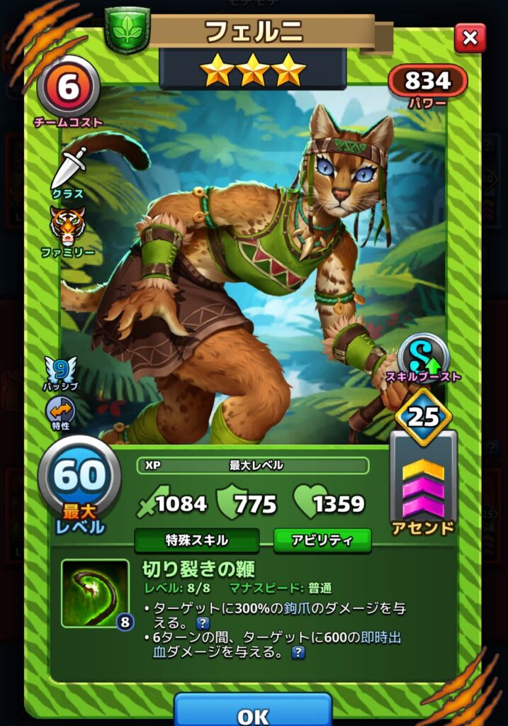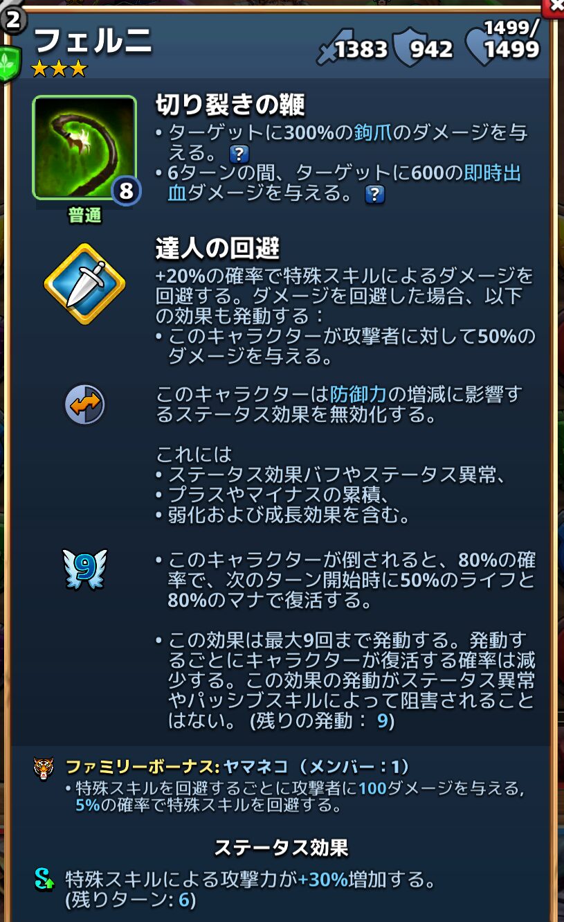 フェルニさんは九生ありのパッシブスキルが強力すぎるヤマネコファミリーの星3英雄です。