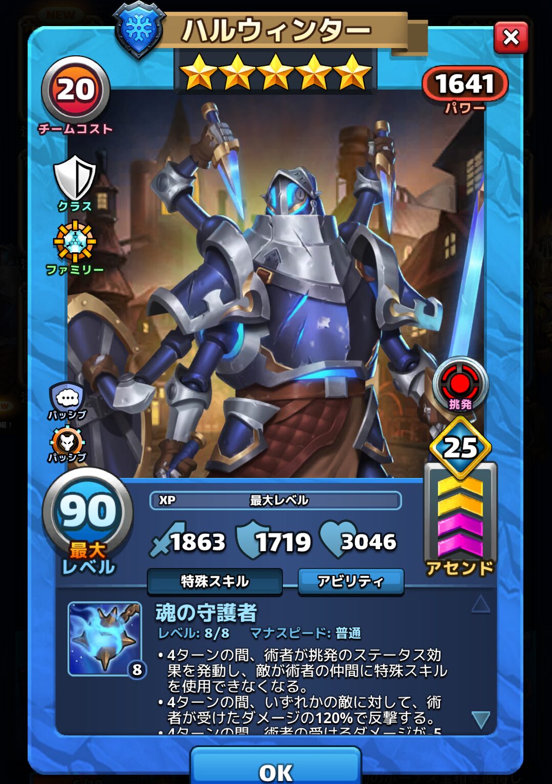 ハルウィンターのアビリティとパッシブスキルは以下の通りです。※達人アビリティ開放した場合
