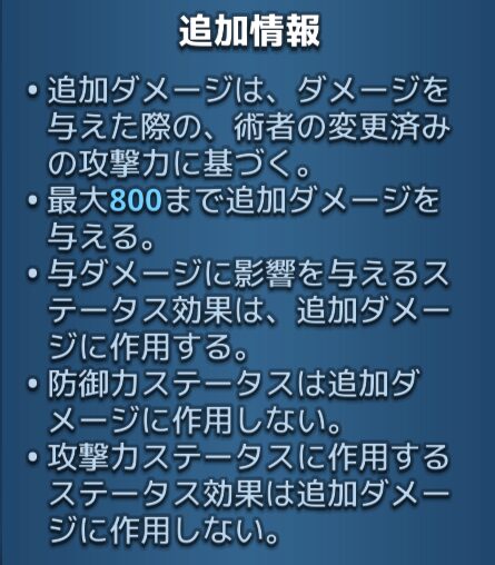 ・成長の恵み:攻撃値が変更される度に、2倍の追加ダメージを与える。