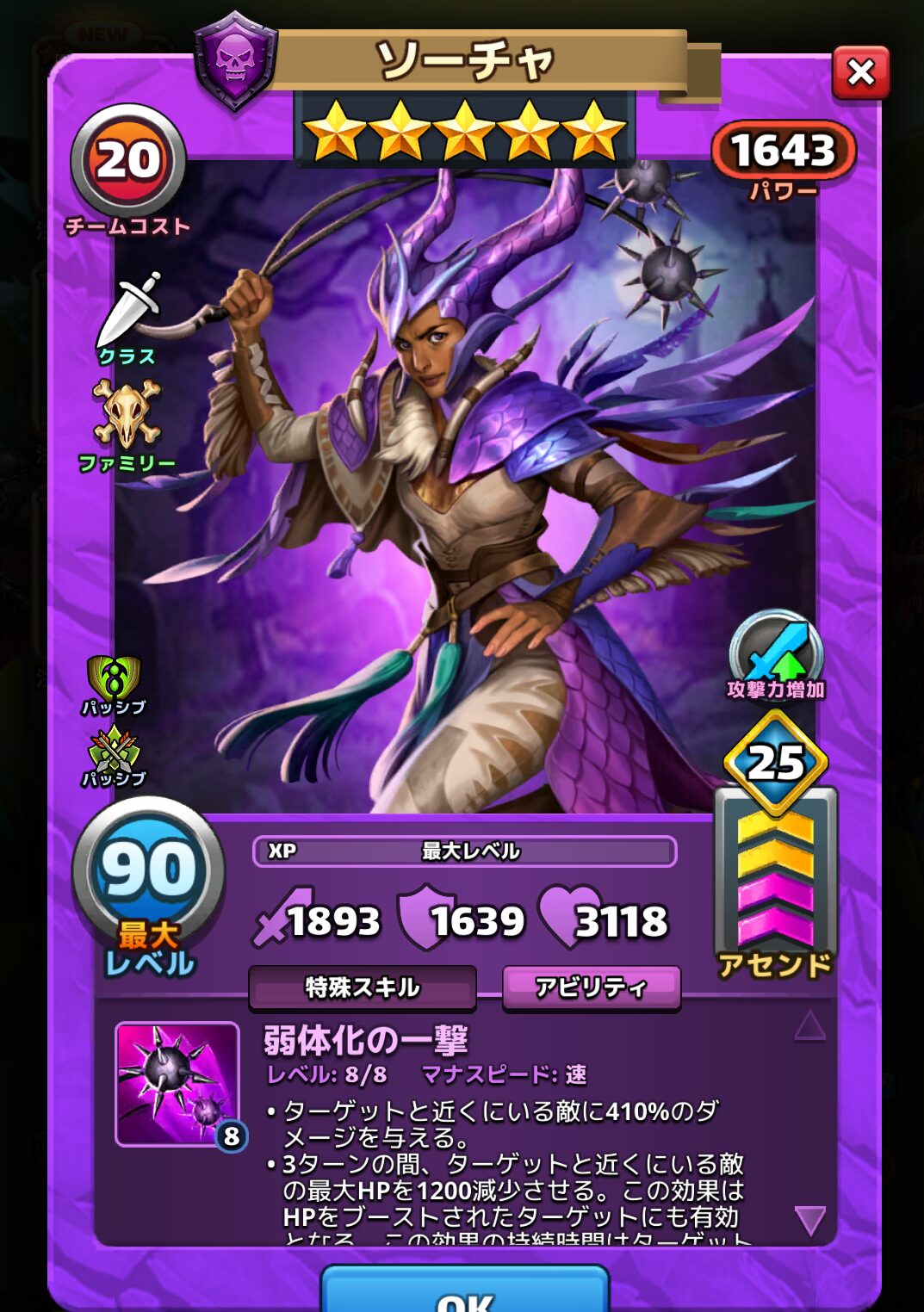 ソーチャのアビリティとパッシブスキルは以下の通りです。※達人アビリティ開放した場合