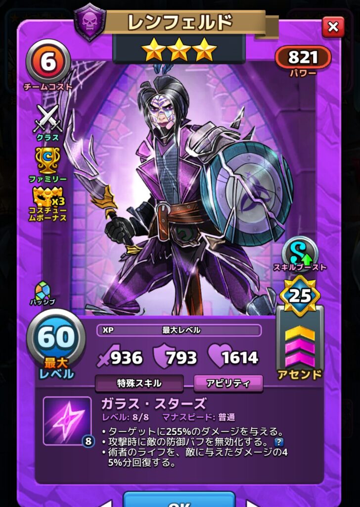 このガラスコスチュームには長年エンパズをプレイする筆者も驚いておりまして、見た目のインパクトもさることながら、このガラスのコスチュームシリーズの追加により一部の星5英雄たちが異次元級の戦闘能力を身につける事ができるようになったのです。