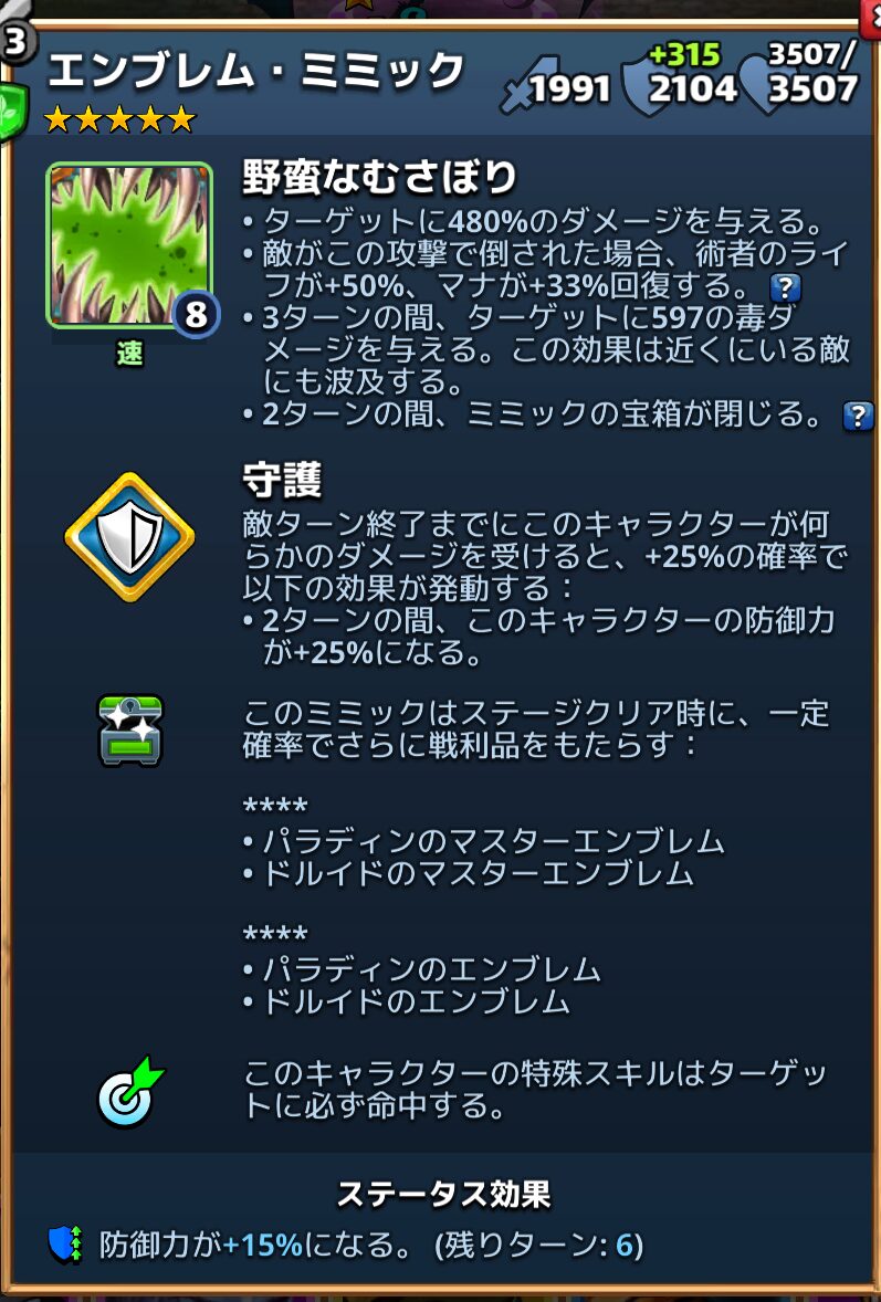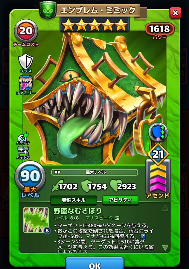 エンブレム・ミミックはミミックファミリーの星5英雄です。