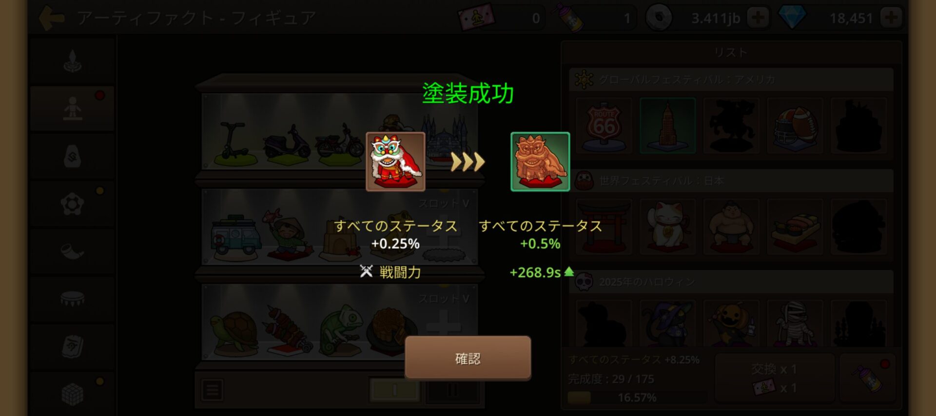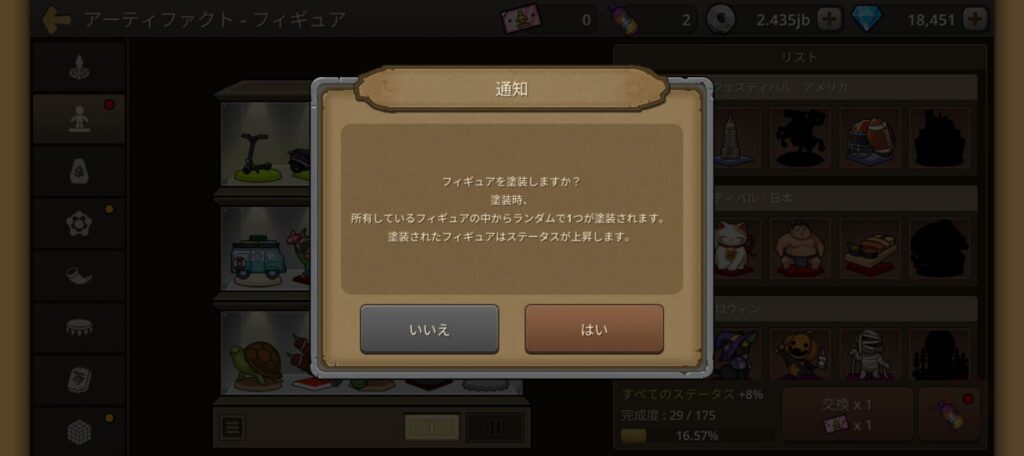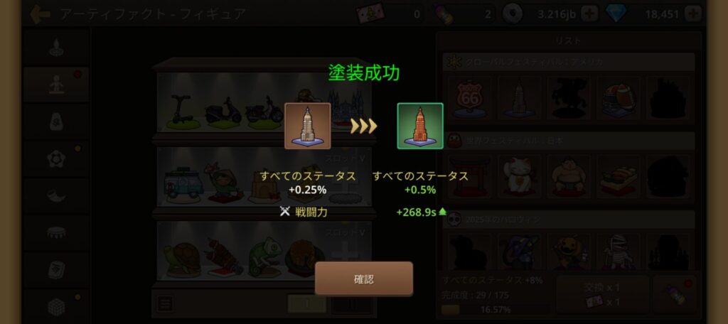 ↑1度の強化で割とステータスアップができるようですが、塗装されるフィギュアはランダムなようです。