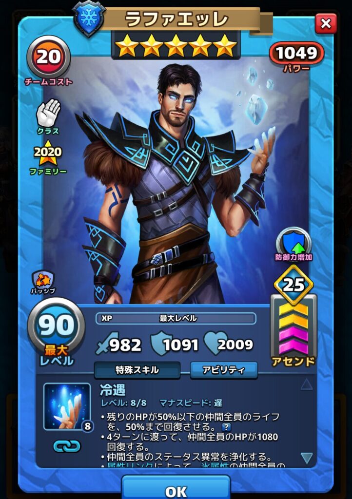 ラファエッレのアビリティとパッシブスキルは以下の通りです。※達人アビリティ開放した場合