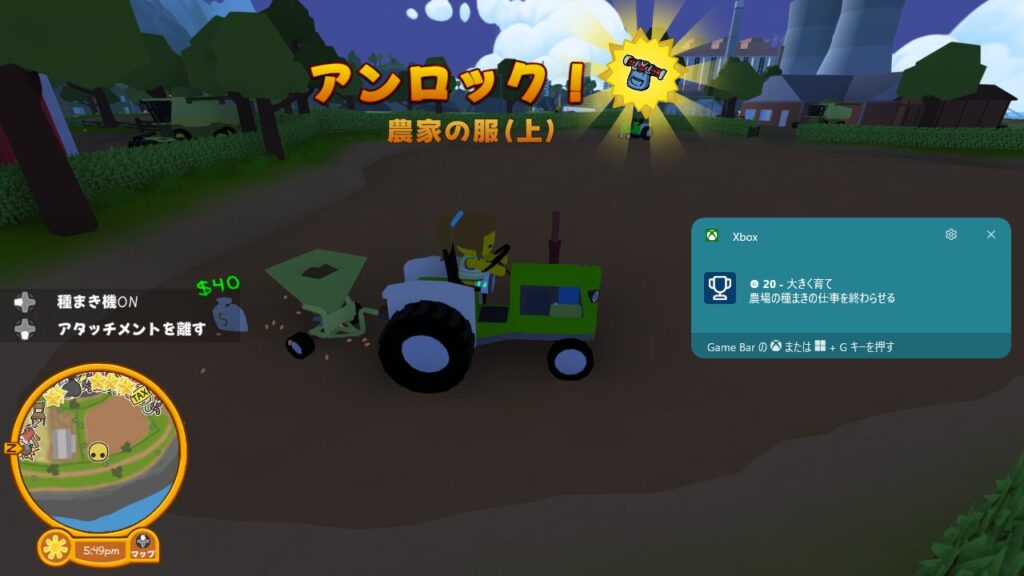 ↑種まき(タネまき)の成功報酬は40ドルと農家の服(上)。