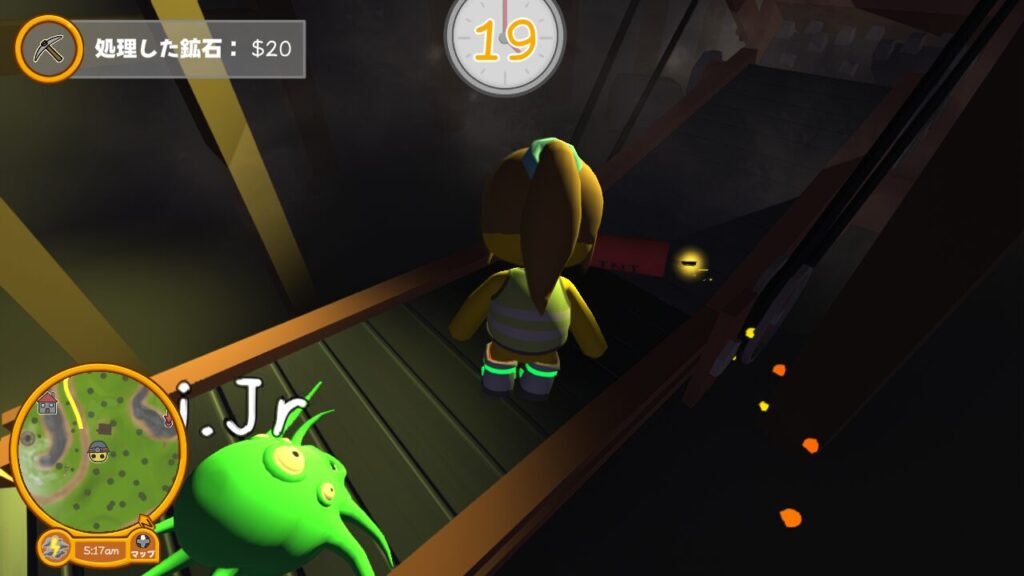 にも関わらず掘れる壁が2か所あるため、「え?ツルハシどこ?」状態で筆者は一度外に出たりして道具を探してしまいましたが、実際は鉱山内部の中心地まで一度進まないといけない仕様みたいなので、気にせず進みましょう。