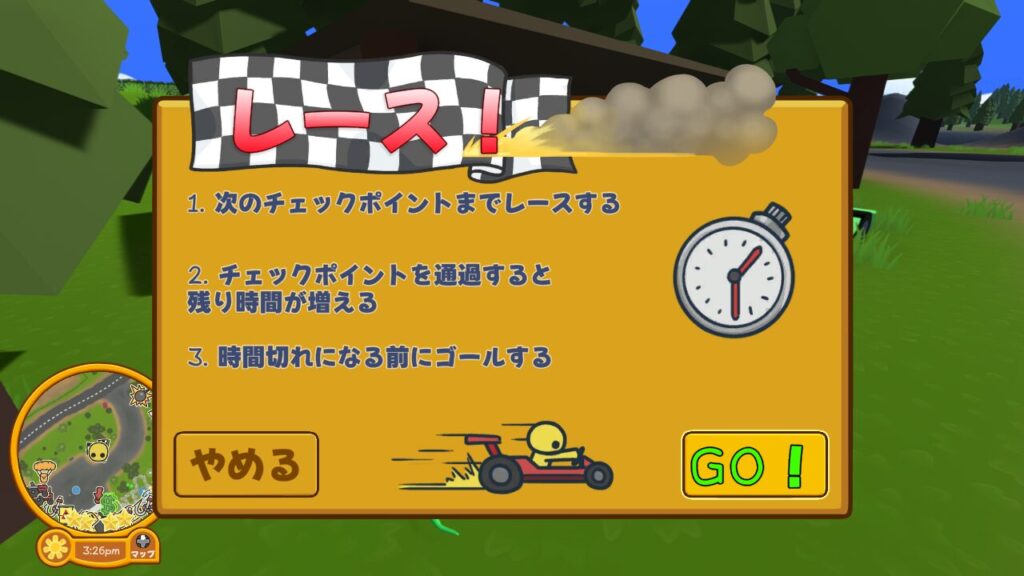 これならレースゲームが苦手な筆者でもいけそうなので、他の場所にあるレースにも挑戦してみようと思います!