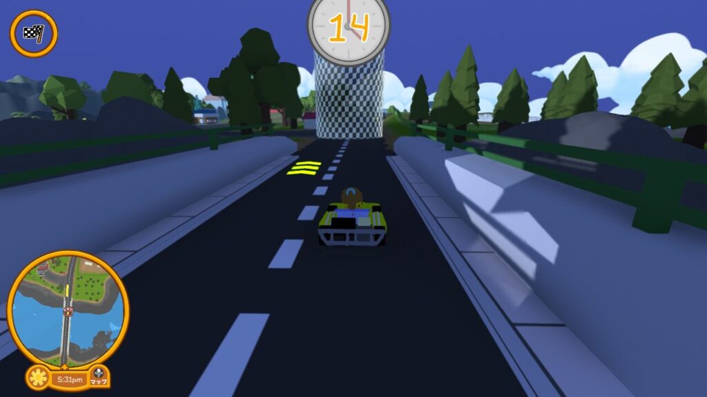 でもチェックポイントまでの時間もだいぶ余裕がある設定で、木やガードレールにぶつかって止まってしまっても、落ち着いてバックしてコースに戻れば全然立て直しが効くイージーさ。