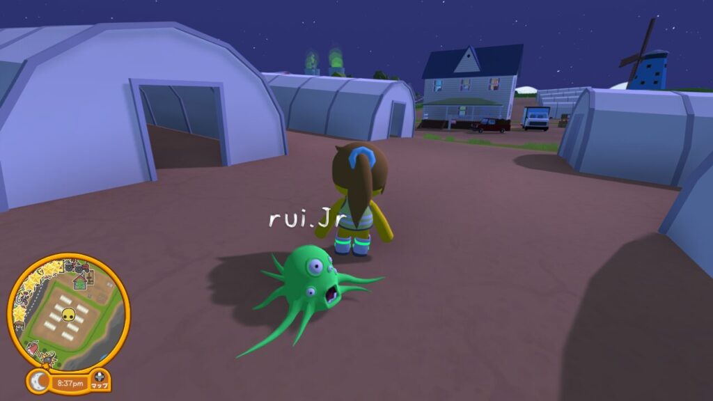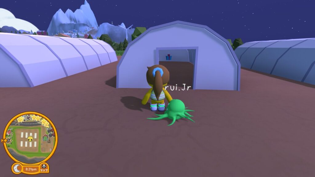 ↑ちなみに打ち上げ花火マシンの近くのビニールハウス群の中には、プレゼントボックスも隠されているので、花火の打ち上げついでに拾っておきましょう。