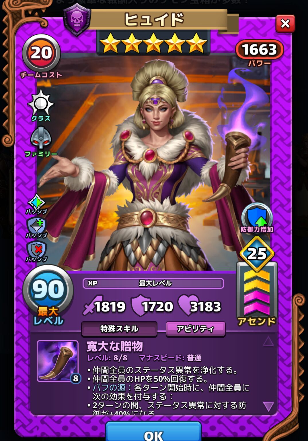 ヒュイドのアビリティとパッシブ効果は以下の通りです。※達人アビリティ開放した場合
