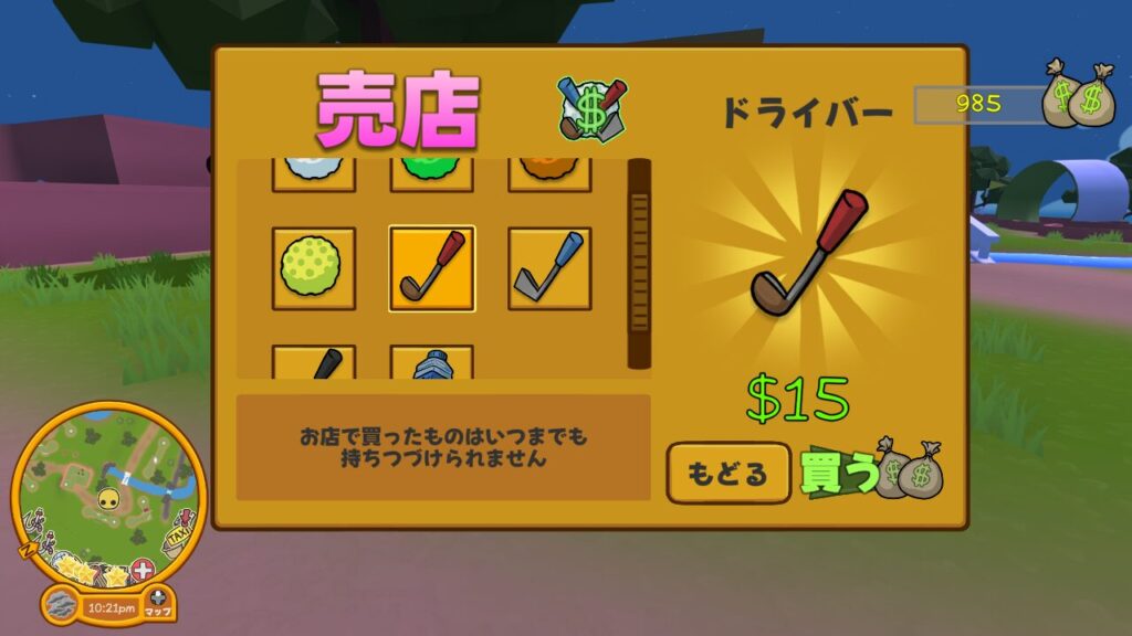 もし入れなければゴルフボールとドライバーを購入してホールをプレイする。が正解かなと…。