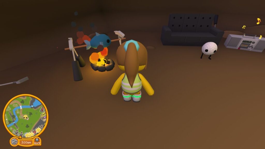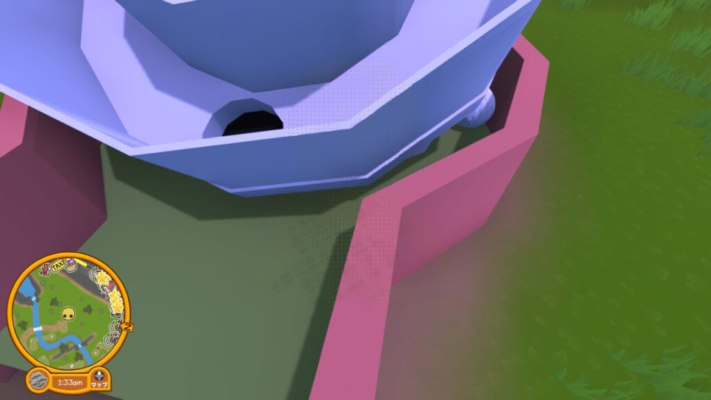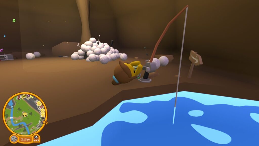 ↑釣り竿のある水たまりに入ったら屋外に吹っ飛ばされて穴から強制排出されます。