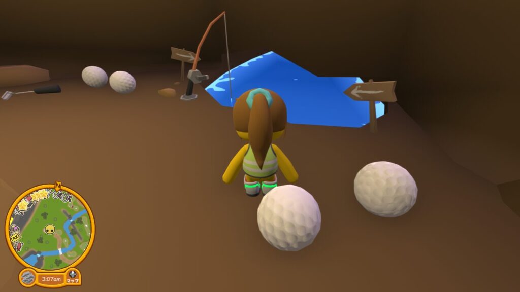 しかもスクリーンショットのようにボールが回収不能の場所にも入ってしまい、ゴルフボールを買いなおす羽目に…。