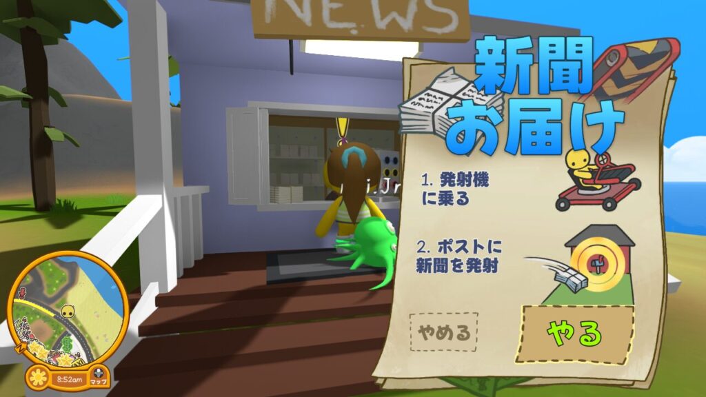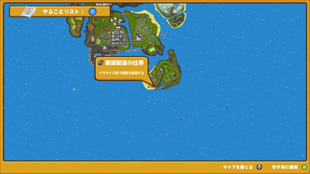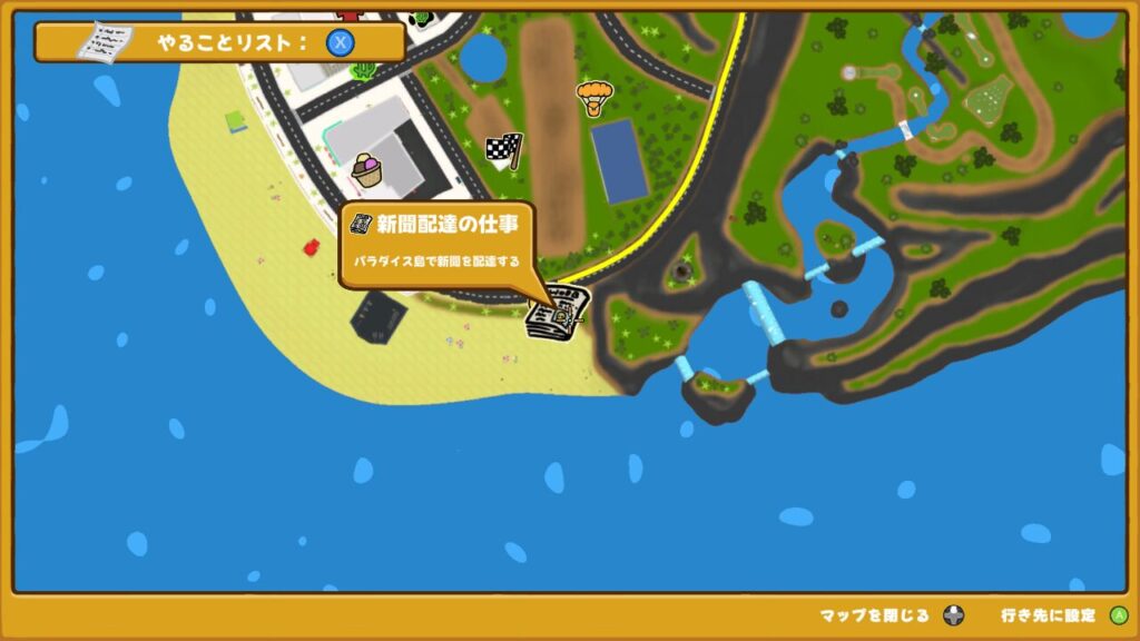 ↑パラダイス島の新聞配達の仕事はここから始められます。
