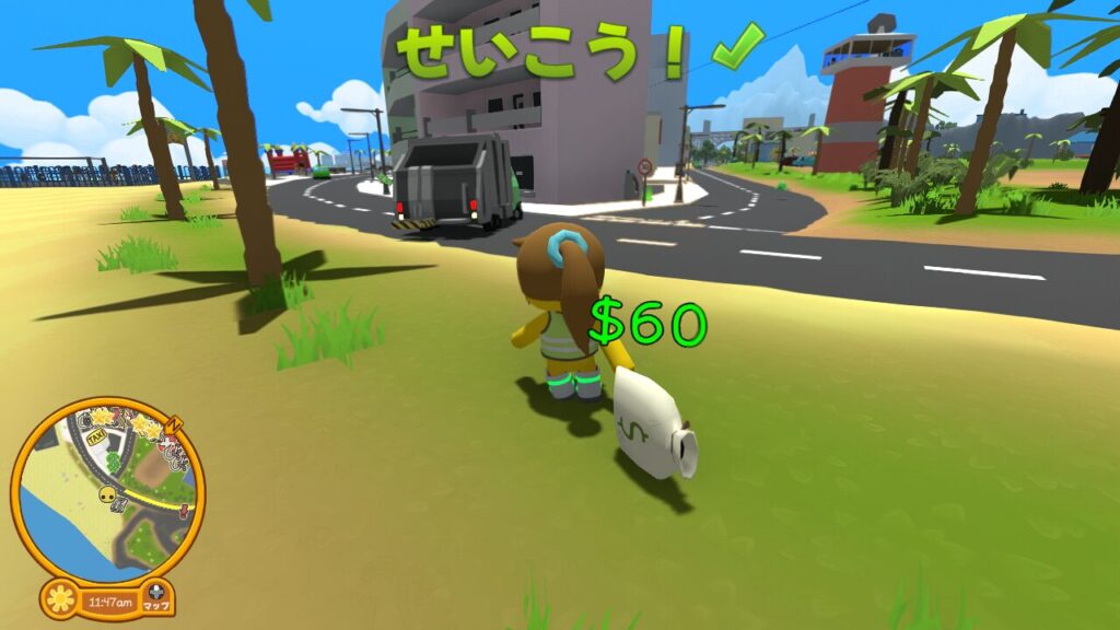 なぜなら住宅街の新聞配達と違い、パラダイス島の新聞配達では、ドル袋を放置すると再プレイ後にドル袋が消えてしまうからです。