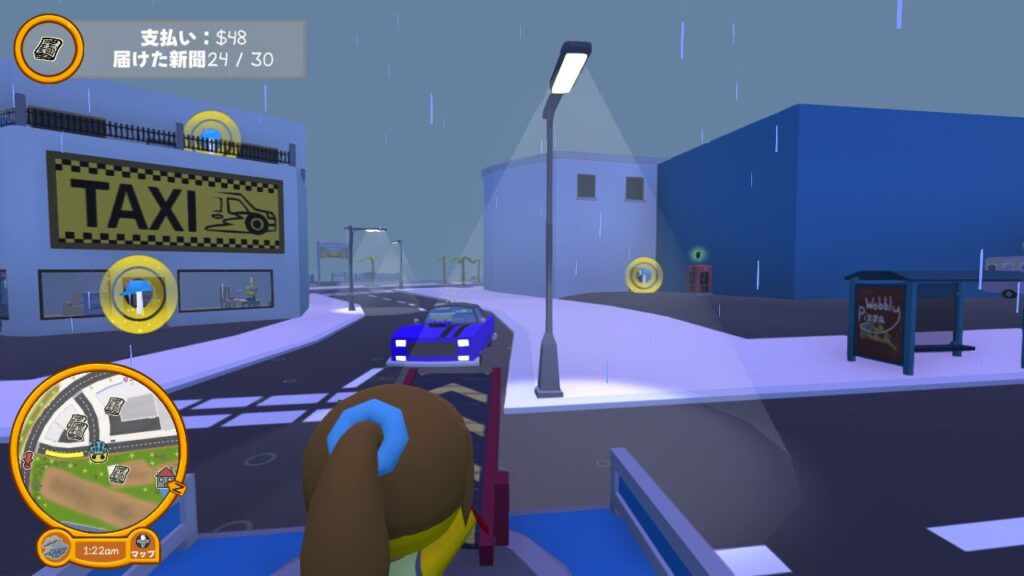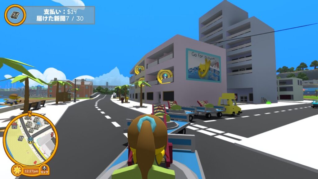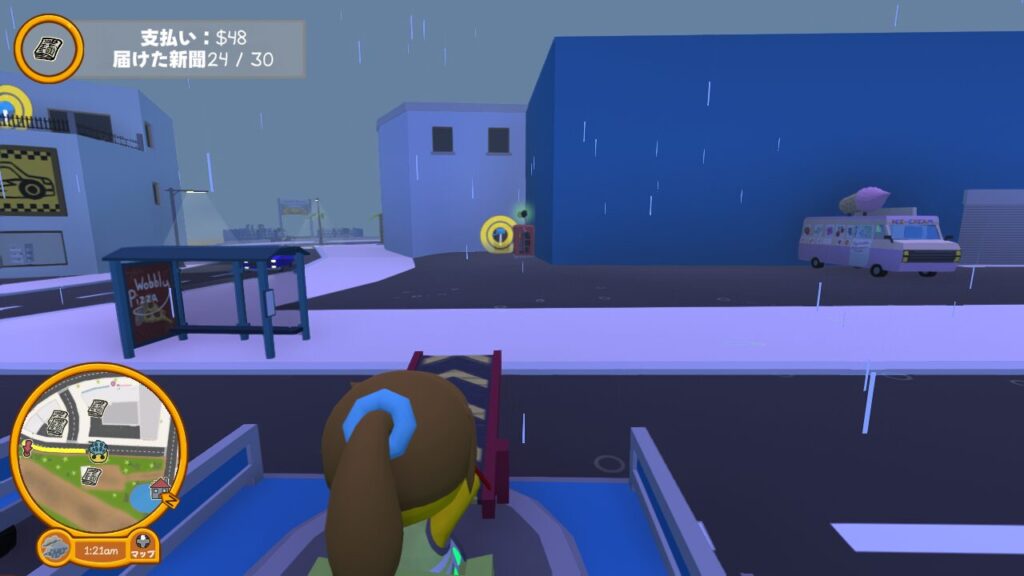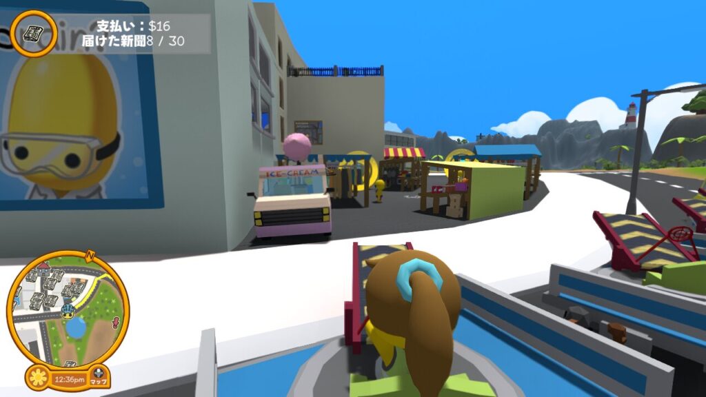 この新聞配達のお仕事は、ウォブリーライフ界でもTOPクラスの高難易度ジョブになっており、とにかくターゲットに新聞を当てるのが難しいです。